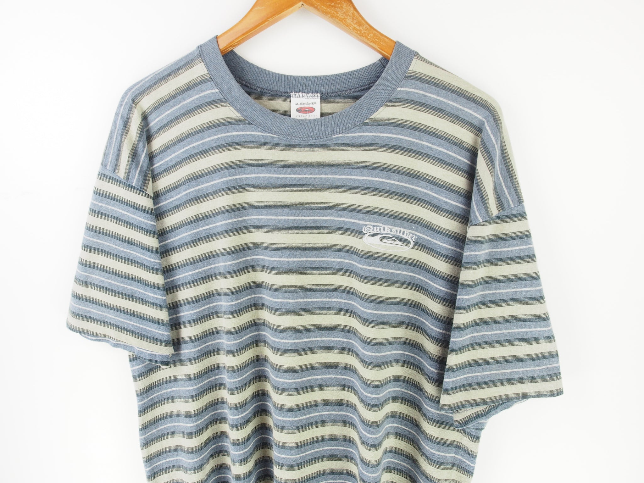 VINTAGE QUIKSILVER STRIPED T SHIRT - L